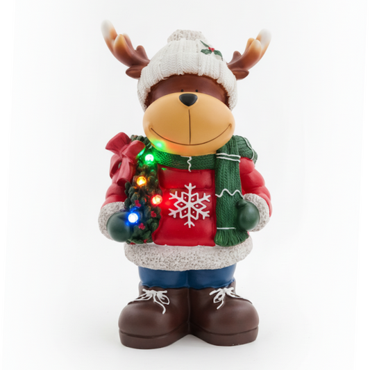 Renna con Ghirlanda - Figura Natalizia con luci LED