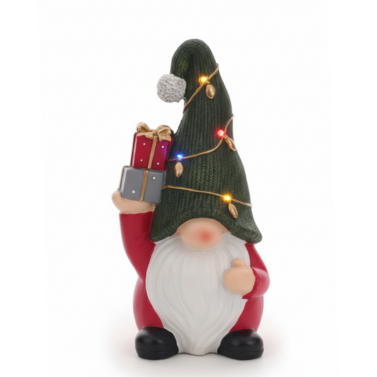 Gnomo con Regali - Figura Natalizia con luci LED