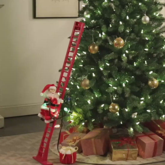 Entra nel magico spirito natalizio con il nostro incredibile Babbo Natale Arrampicatore di Mr. Christmas! Per due generazioni, questo straordinario personaggio animato ha decorato case in tutto il mondo, portando gioia e magia alle festività. Un dettagliatissimo Babbo Natale, vestito con tessuto reale, scala su e giù una scala rossa di 110cm senza mai stancarsi.
