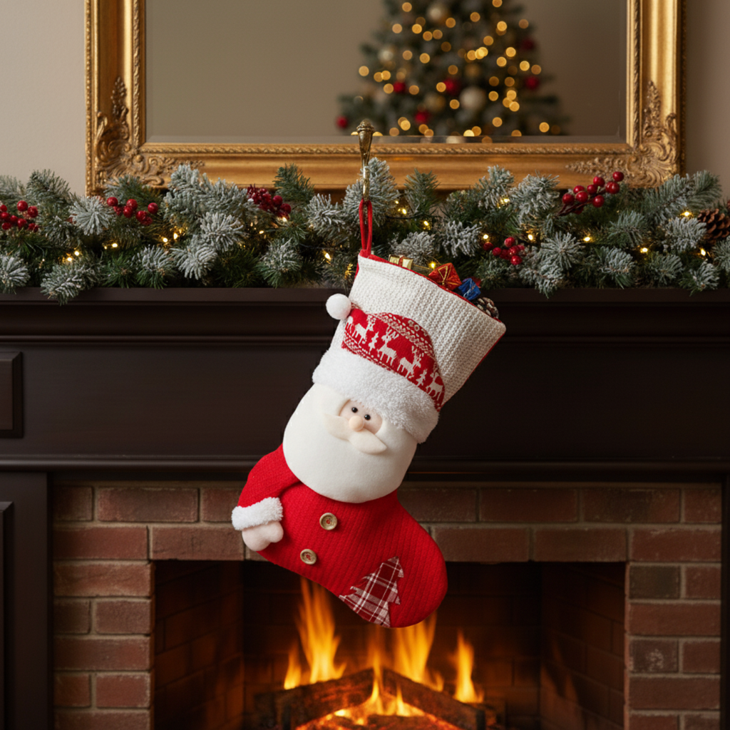 Realizzata in poliestere e maglia, questa calza è morbida al tatto, resistente e decorativa. Il festoso design a forma di Babbo Natale la rende perfetta per grandi e piccini, portando allegria e tradizione nella tua casa. Non lasciarti sfuggire l'occasione di completare le tue decorazioni natalizie con un accessorio unico e affascinante!