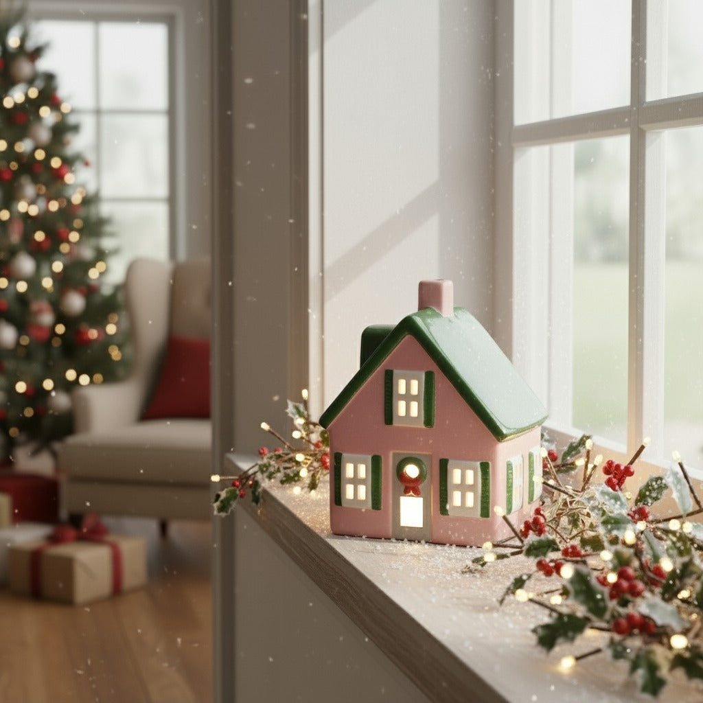 Questa graziosa casetta decorativa con luci LED è l’accessorio perfetto per creare un’atmosfera calda e accogliente durante le Feste. Realizzata in ceramica e curata nei dettagli, misura 17x13x10 cm ed è ideale da posizionare su un mobile, un tavolino o come centrotavola luminoso. La luce a LED bianco caldo che si diffonde dalle finestrelle regala un effetto suggestivo e avvolgente, trasformando ogni angolo in un piccolo villaggio natalizio. Grazie al funzionamento a batterie (3 LR44 incluse), è pronta all’uso e facile da collocare ovunque desideri, senza bisogno di prese o cavi. Una decorazione elegante e raffinata, pensata esclusivamente per ambienti interni, che aggiunge un tocco di magia e tradizione alla tua casa durante il periodo natalizio.