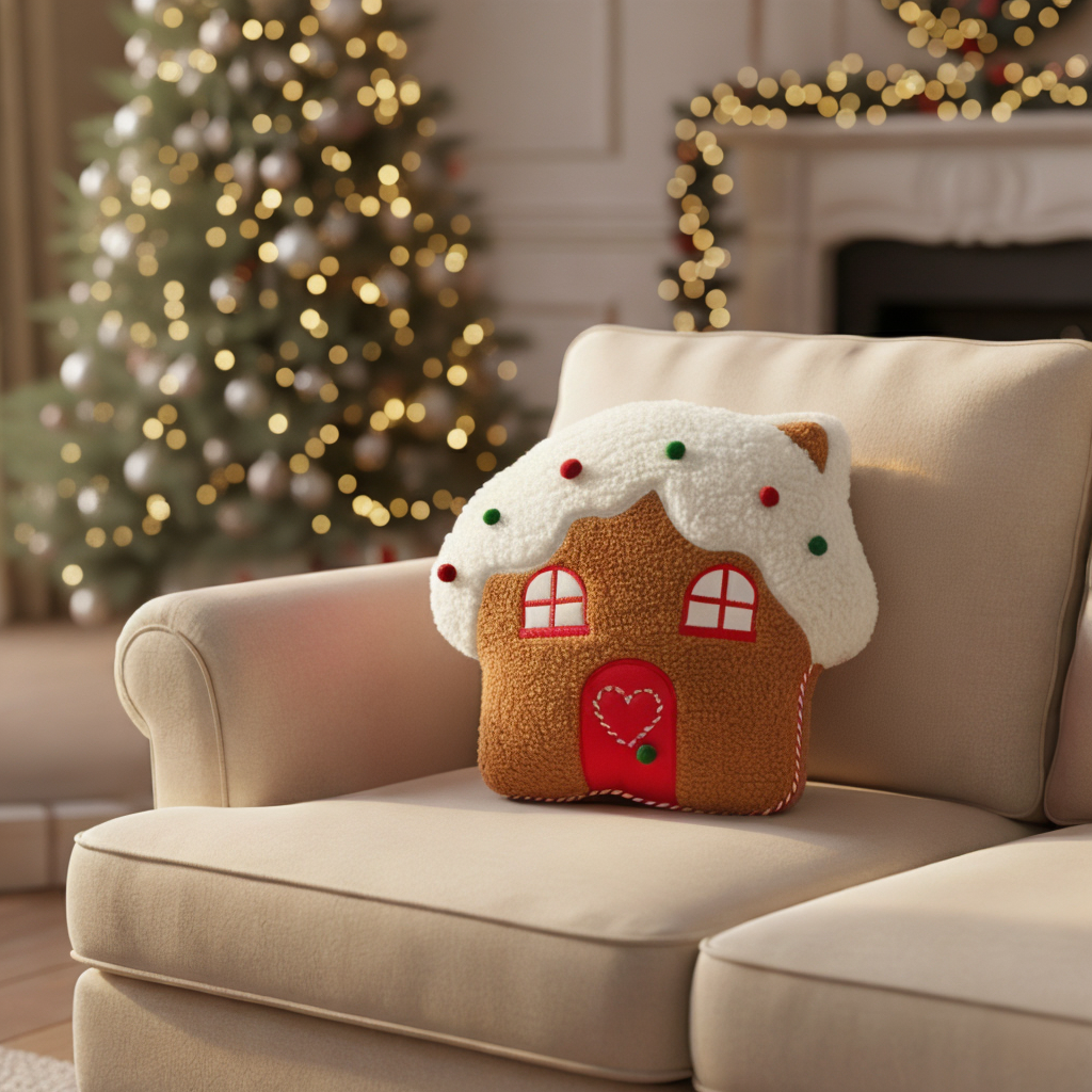 Questo cuscino natalizio a forma di casetta di pan di zenzero porta tutta la dolcezza e il fascino delle feste direttamente in casa. Realizzato in morbido poliestere, questo cuscino unisce comfort e resistenza, diventando ideale per arricchire gli ambienti interni con un tocco giocoso e festoso. Il design ricco di dettagli, ispirato alle classiche casette di pan di zenzero, e i suoi colori caldi e vivaci creano un’atmosfera accogliente e gioiosa, perfetta per immergersi nello spirito natalizio. Morbido e avvolgente, questo cuscino non solo decora gli spazi, ma regala anche momenti di relax e allegria durante tutto il periodo delle feste.