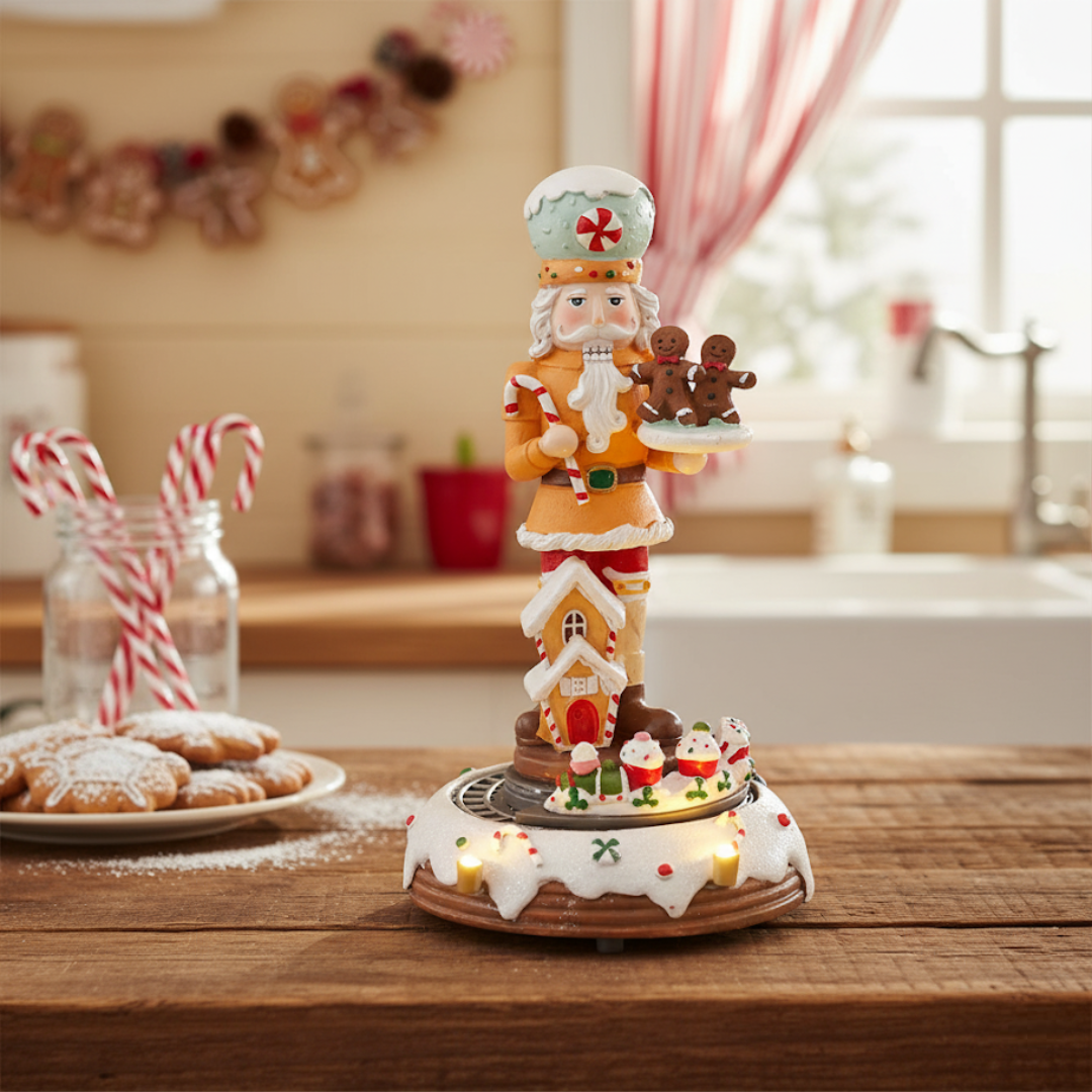 Schiaccianoci Pan Di Zenzero con Trenino - Decorazione con Luci, Musica e Movimento